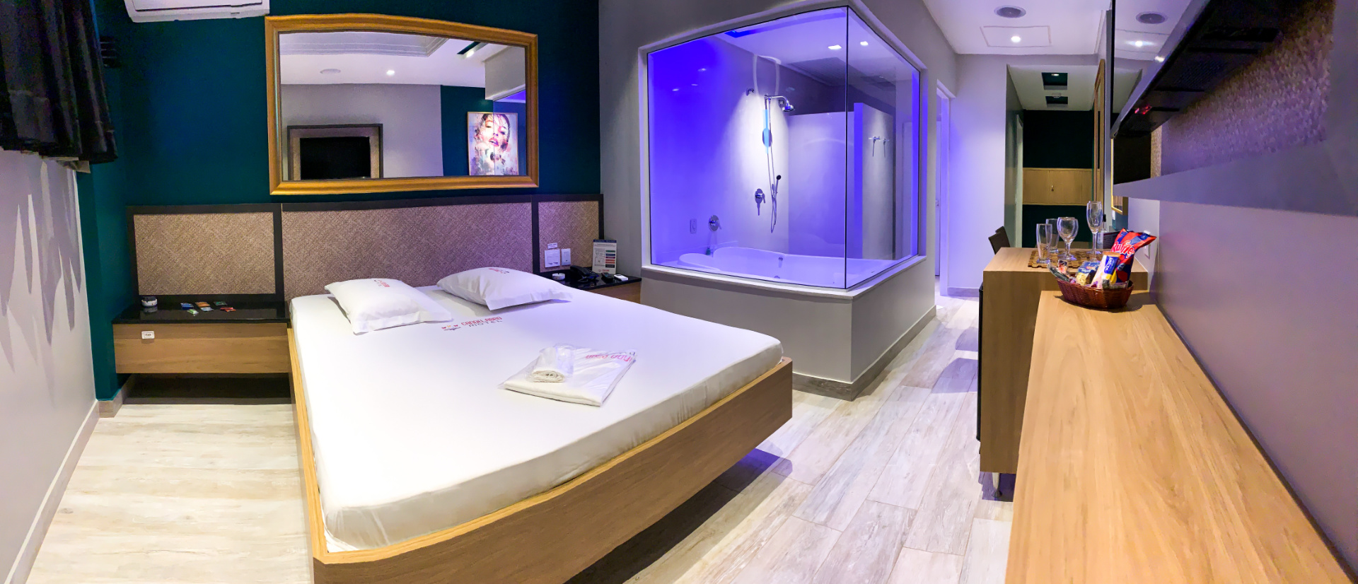 Nossas suítes são perfeitas para curtir por longos periodos. São diversos ambientes, internos ou ar livre, para aproveitar sem preocupação. Elas podem receber até 15 pessoas, sendo ideais para eventos ou comemorações especiais. Do Oriente ao Ocidente, as duas opções contem com ducha dupla, sauna e banheira de hidromassagem. Para surpreender ainda mais, cada uma delas tem benefícios únicos que você pode conferir abaixo.
